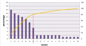 Acest lucru este denumit în mod obișnuit principiul Pareto și este obișnuit atunci când organizațiile trebuie să ia decizii cu impact masiv. Acest lucru este înclinat spre stabilirea priorităților, deoarece 20% din factorii care contribuie la 80% din creșterea organizației vor avea prioritate maximă. Aceasta va acorda deciziilor care au cel mai înalt nivel de impact prioritate maximă. Iată un exemplu de diagramă de analiză Pareto: