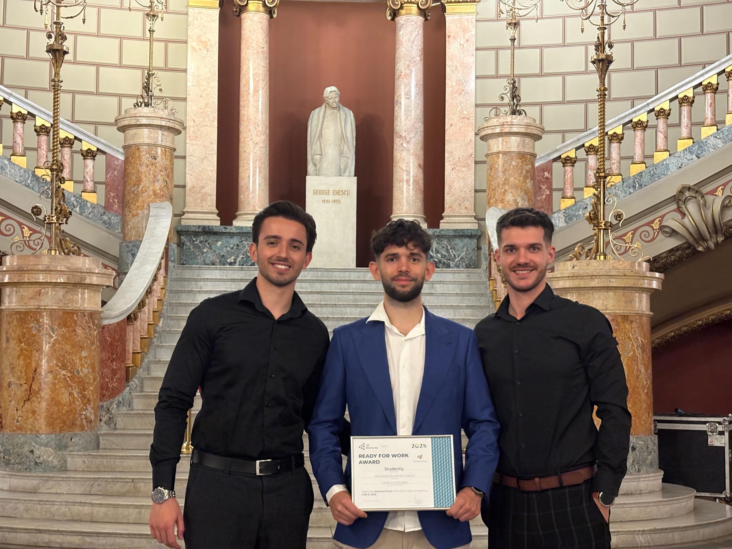 Echipa Studently a câștigat și unul dintre premiile speciale (Signature Awards) acordate în cadrul competiției de antreprenoriat Gen-E 2025, și anume: Ready for Work Award – oferit de ManpowerGroup. Echipa Studently, din Universitatea din București, coordonată de prof. Camelia Cojocaru, a propus o platformă gratuită menită să ajute studenții să se integreze rapid la început de an universitar.