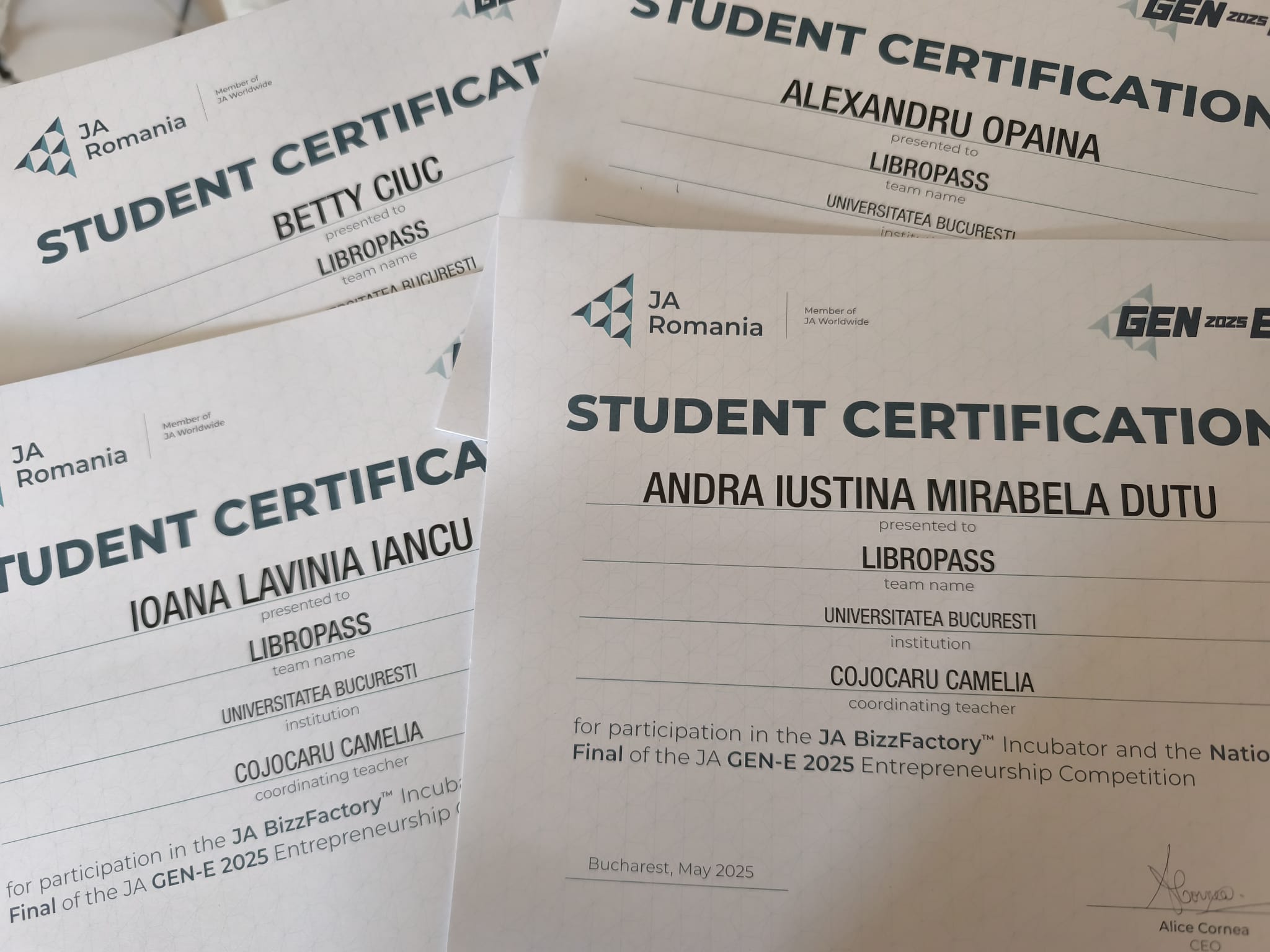 - Libro Pass– finalistă. Membri: Andra Iustina-Mirabela Duțu, Betty Ciuc, Ioana Lavinia Iancu, Alexandru Opaina (FAA, Cibernetică Economică, anul 1)